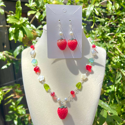 Fruit Earrings and Necklaces (Hand-made) | Strawberry, Cherry, Orange, & Blueberry!