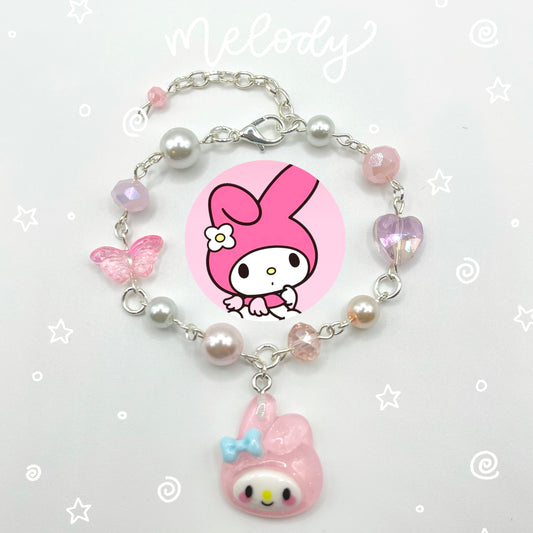 Kawaii Sanrio Inspired Beaded Chain Charm Bracelet (Hand-Made)